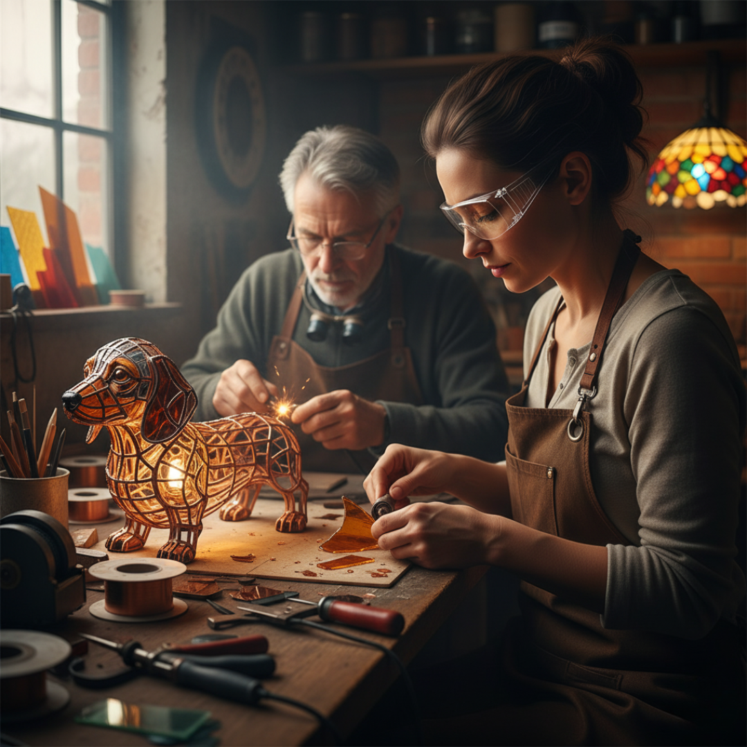 Tillverkade av fint färgat glas och formade för hand, ger våra lampor karaktären och lystern från tidlöst konsthantverk in i ditt hem – ingen galleribiljett krävs.